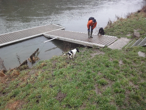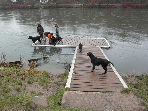 In der Nähe der Henrichshütte in Hattingen trafen sich die RheinRuhrSetter zur letzten Aktion im Jahr 2011, dem Silvesterspaziergang. Durch den vielen Regen in den letzten Tagen waren wir bereits auf schlammige Bodenverhältnisse vorbereitet. "Quoten-Cocker" Rudi wurde diesmal wieder untersützt von den beiden Cocker-Youngsters Da Vinci und Dakar. Es zeigte sich, dass sie genauso wasserverrückt sind wie unsere Setter. Sie folgten Katrin und Christian begeistert zum Anleger und gingen auch ein Ründchen baden.